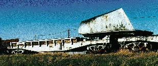 blade is hinged, so it can be raised onto another flatcar for transit.